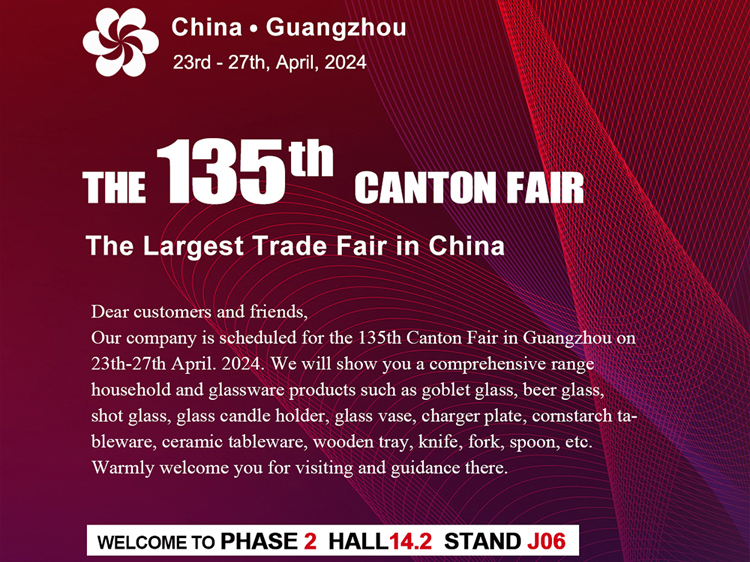 Dear customers and friends, our company is scheduled for The 134th Canton Fair in Guangzhou on October 23-27, 2023. We will show you a comprehensive range glassware products such as double wall glass, drinking glass, whisky glass, shot glass etc...